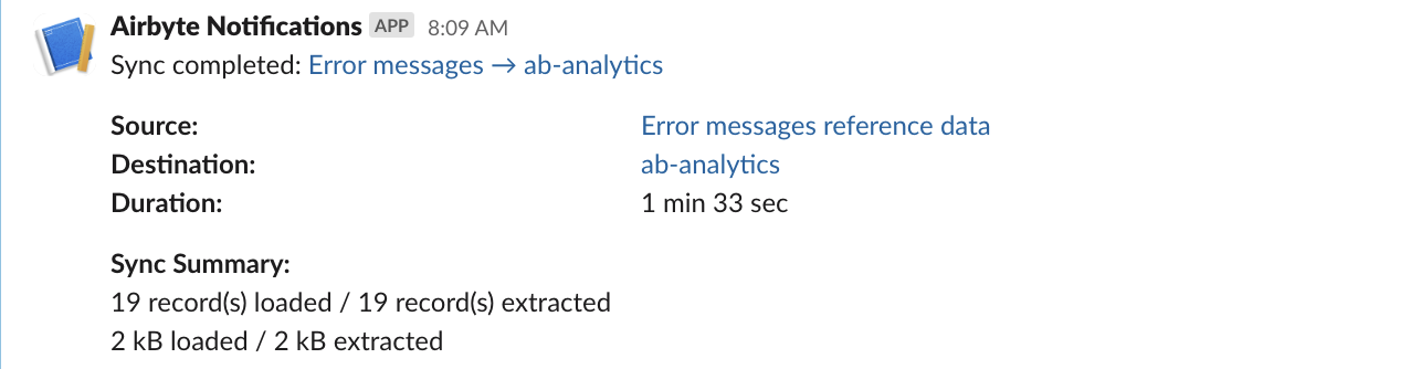 Airbyte passes both the data payload along with text blocks that are intended for Slack usage.